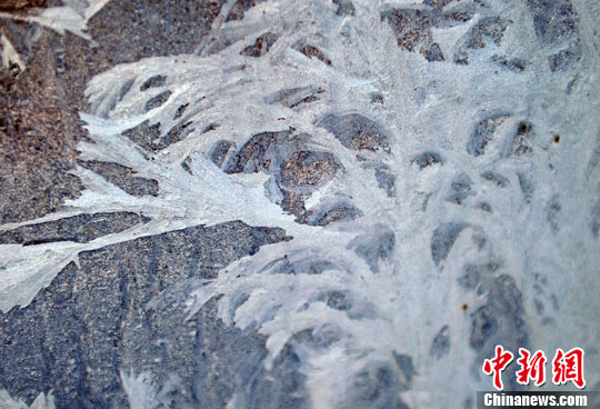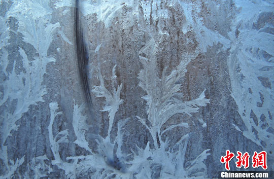 1月17日,清晨时分,一朵朵栩栩如生的冰花盛开在窗扇的玻璃上,大自然的鬼斧神工给寒冷的北方带了神奇景观,这是北方冬天特有的一种冰花景观,十分惹人喜爱。中新社发 于海洋 摄