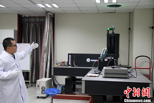 图为兰州大学大气科学学院博士生周天介绍拉曼-荧光激光雷达系统。中新社发 南如卓玛 摄