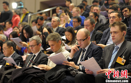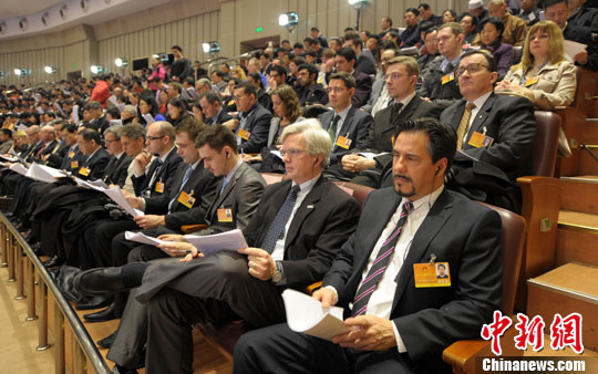 1月17日,列席旁听湖北省十二届人大二次会议的外籍人士。当日,湖北省第十二届人民代表大会二次会议在武昌洪山礼堂开幕。来自美国、法国、韩国等10多个国家51名外籍人士旁听了会议。中新社发 张畅 摄