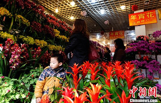 1月20日,上海各大花市生意火爆。随着春节的临近,年宵花价格也“涨声”一片。中新社发 汤彦俊 摄