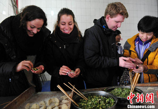 包饺子、吃饺子是中国人在春节时特有的民俗传统,丹麦Gladsaxe学校师生团此次的交流活动,着实体验了中国这一传统民俗。