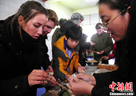 图:丹麦中学生石家庄学包饺子体验中国民俗