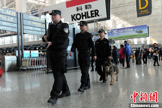 广州白云机场从1月22日起至2月6日将实施航站楼防爆检查,乘客进入航站楼前,需接受防爆查验。中新社发 梁永强 摄