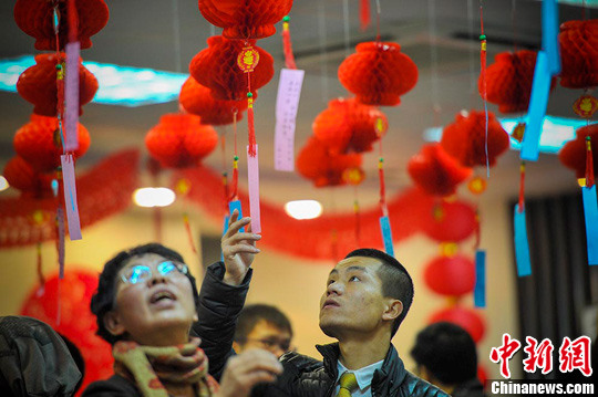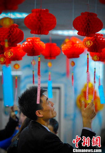 图为市民猜灯谜。刘新 摄
