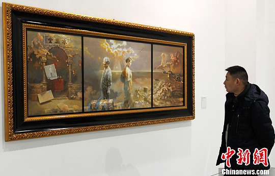 图为重庆美术馆内,市民参观大师画作。周毅 摄