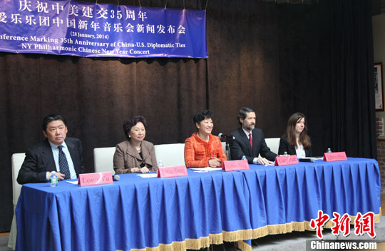 2月1日晚,纽约爱乐乐团将在纽约林肯中心举办盛大音乐会,欢庆中国马年。这是纽约爱乐乐团连续第三年举办中国春节庆典。图为发布会现场。中新社发 阮煜琳 摄