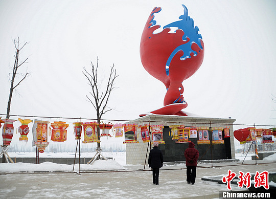 1月29日拍摄于新疆玛纳斯县,当地的巨型“葡萄酒杯”已成地标式建筑。马新龙 摄