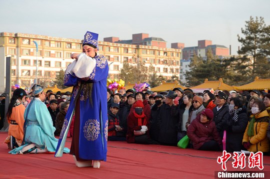 2月5日,呼和浩特文化庙会开幕,晋剧演出吸引市民观看观。中新社发 刘文华 摄
