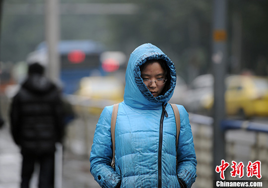 重庆迎来雨雪降温潮 市民厚衣上身抵御风寒