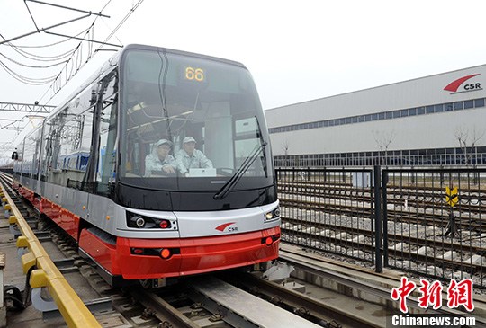 2月17日,国际目前最先进的第三代100%有轨电车样车在中国南车四方股份公司下线。中新社发 徐崇德 摄