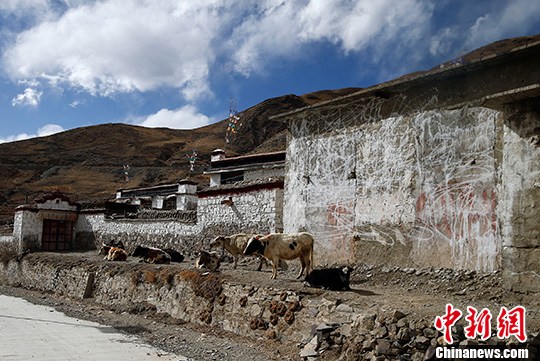 2月下旬,海拔4500米处的西藏浪卡子县白地乡民居风景。中新社发 张浩 摄