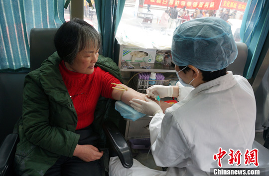 3月4日,市民正在进行无偿献血。中新社发 赵琳露 摄