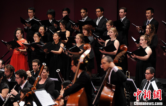 当地时间3月10日,美国加州长滩州立大学举行举行2014年中国文化周活动。在当天举行的开幕式上,来自美国当地的演员用中文演出了大型合唱交响曲《弟子规》。中新社发 毛建军 摄