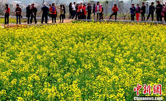 3月14日,阳春三月,位于福州闽侯县白沙镇孔元村,油菜田间楚楚泛金光,油菜花盛开美不胜收。前来踏青的游人徜徉在这油菜花的海洋,流连忘返。中新社发 刘可耕 摄