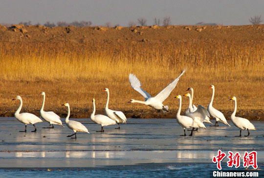 野生白天鹅栖息内蒙古 准备跨国“旅行”