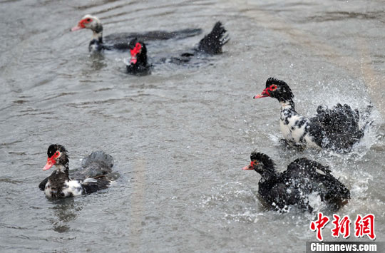 3月20日,一群非洲雁在水中嬉戏。当日,沈阳天气转暖,吸引了众多的非洲雁在野外嬉戏。