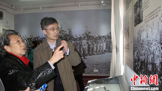 3月20日,周恩来侄女周秉德观看纪念黄埔军校建校90周年展。中新社发 刘舒凌 摄