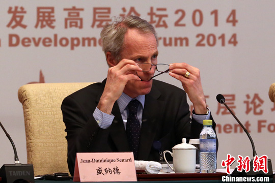3月24日,外方代表、米其林集团总裁盛纳德在中国发展高层论坛2014年会上聆听发言。中新社发 韩海丹 摄