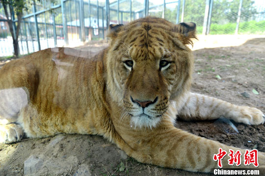 3月31日,无锡动物园迎来了两位珍稀“宾客”——狮虎兽。中新社发 李一芳 摄