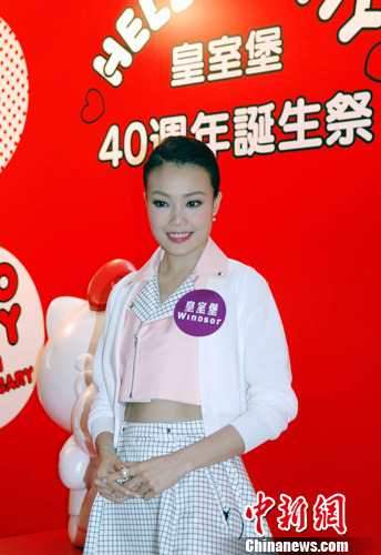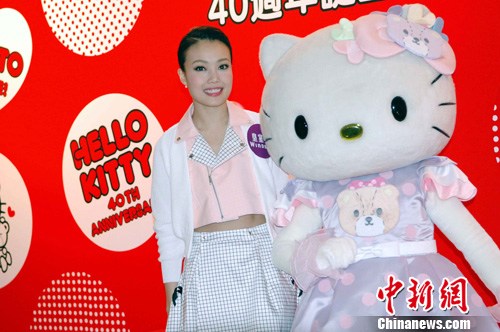 4月6日,香港著名歌星容祖儿应邀为一家商场举办的“Hello Kitty 40周年”庆祝活动揭幕。中新社发 洪少葵 摄