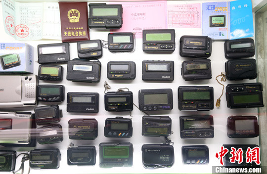4月9日,展出的各种品牌BP机。中新社发 泱波 摄