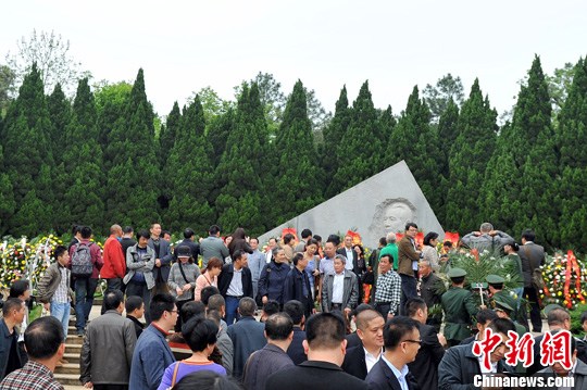 4月15日是胡耀邦逝世25周年纪念日,在江西鄱阳湖畔的共青城富华山胡耀邦墓前,来此瞻仰凭吊胡耀邦的当地民众或外地游客络绎不绝。中新社发 刘占昆 摄