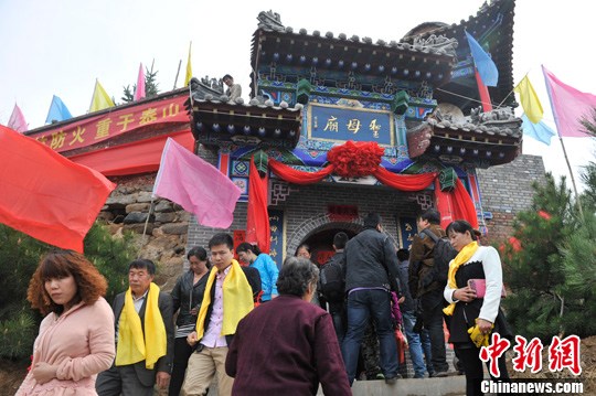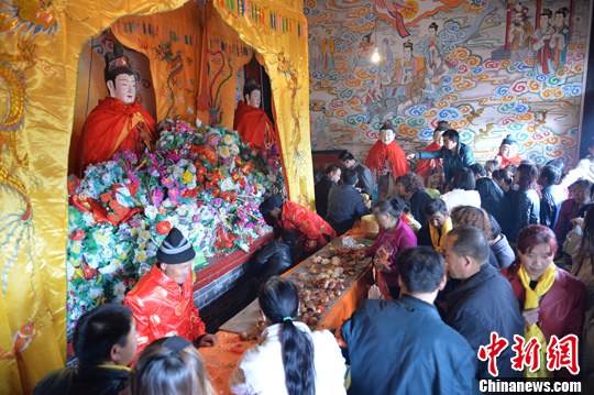 图为山西省太原市娄烦县,有一千多年历史的“圣母庙会”再现千人祭拜求子的火爆场面。中新社发 韦亮 摄
