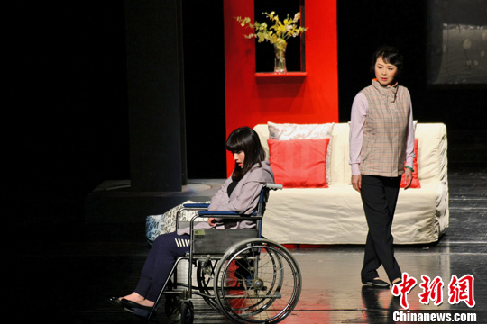 4月19日晚,由曹禺之女、著名作家万方编剧,万方之子苏蓬任导演的龙马社话剧《有一种毒药》亮相首届天津曹禺国际戏剧节,在天津大剧院上演。中新社发 佟郁 摄