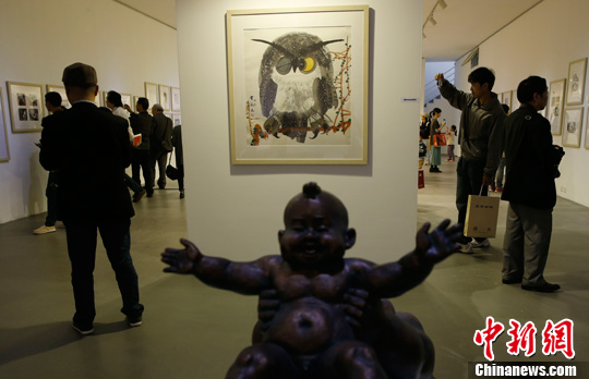 4月20日,展示黄永玉文学成就的“我的文学行当——黄永玉作品展”在北京798开幕。中新社发 刘关关 摄