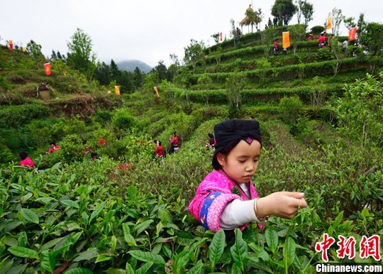 4月20日,“谷雨”当天,按当地民间习俗,男女老少纷纷上山采摘“谷雨茶”。中新社发 石农兵 摄