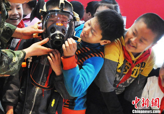 图为4月22日,苏州小学生正在参观消防教育馆。中新社发 许皎辉 摄