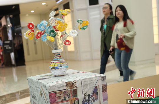 当日,南京举办主题为“旧物智造”的环保公益展,展出用硬纸板组成的马、手绘的环保袋、废旧报纸制成的花瓶等,以此来倡导保护环境、爱惜家园。