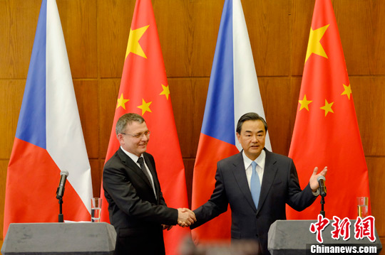 4月29日,中国外交部部长王毅(右)在北京与捷克共和国外长扎奥拉莱克举行会谈,会后两国外长共同会见记者。中新社发 侯宇 摄