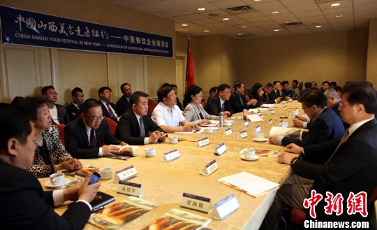 5月4日,“中国·山西美食走进纽约——中美餐饮企业座谈会”在美国纽约华埠社区举行。中新社发 阮煜琳 摄