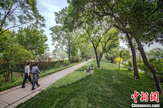 图为天津首座城市大型绿色沿线公园。中新社发 佟郁 摄