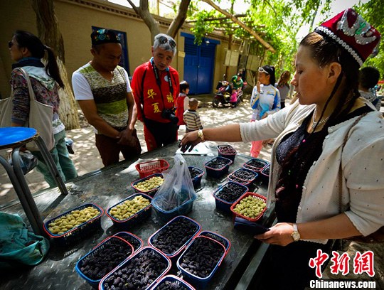 据介绍,吐鲁番是新疆最早迎来春天的地方,也是桑葚成熟最早的地方,是名副其实的“新疆第一鲜”。成熟的桑葚质油润,酸甜适口。5月正值吐鲁番桑葚果实成熟的季节,当地人会采收,洗净,去掉杂质,晒干或略蒸后晒干食用。近年来,吐鲁番桑葚已经从单一的鲜食,逐渐演变为食用、药用、工业用等方面拓展,逐步形成了桑葚产业。