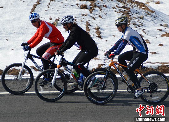入夏后,甘肃肃北县迎来一场降雪。近日,该县首届“梦柯冰川杯”自行车挑战赛在冰雪中鸣枪开赛,来自青海、酒泉、瓜州、玉门、敦煌等周边县市的200多名自行车运动爱好者参加了此次比赛。此次比赛总赛程为40公里,分为女子和男子组,比赛的“快乐骑士”年龄最大的52岁、最小的仅11岁。