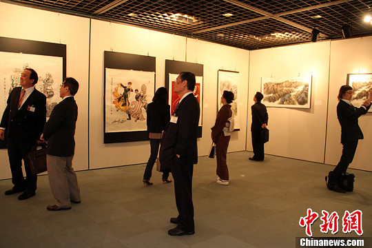 “彩绘丝路”作品展吸引了众多的京都市民前来参观,他们对此次展出的艺术佳作表示赞赏。保圣 摄