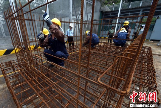 图为5月14日,香港惩教署大榄惩教所在囚人士学习钢筋屈扎工艺。中新社发 张宇 摄