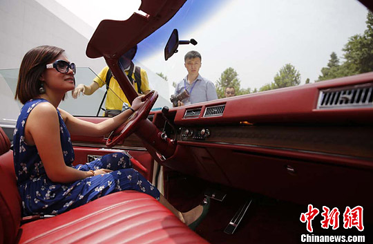 5月26日,即将参展“致风范——2014凯迪拉克设计艺术大展”的两款经典古董车和一台概念车亮相上海,吸引了沪上不少爱车一族的目光。