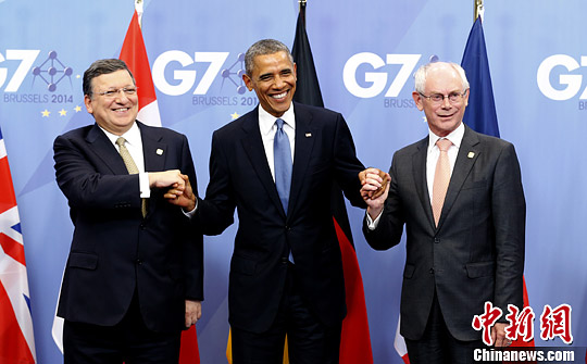 图为美国总统奥巴马与欧盟领导人出席“七国集团”峰会。中新社发 欧盟供图