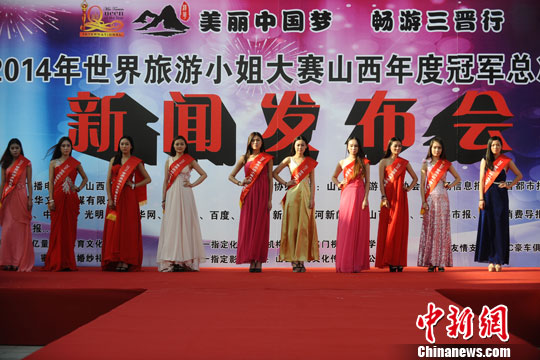 当日,2014世界旅游小姐年度冠军总决赛山西赛区在山西太原启幕。本届大赛将以“美丽中国梦 畅游三晋行”为主题,通过逐级赛事推进,用选手的眼睛和心灵展现出最能代表山西旅游特色的山之魂、水之韵,让“晋善晋美”旅游理念继续扎根于大众心里。参加选手们大赛将通过历时3个月的初赛、复赛、决赛等一系列比赛,最终决出山西赛区前三甲,她们将代表山西参加全国区总决赛,直至晋级世界比赛。