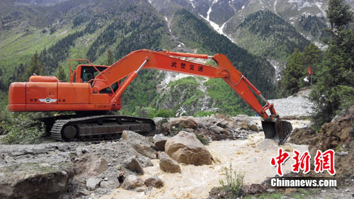 中新网拉萨6月13日电(赵延 汪巍)6月11日22时许,川藏公路然乌湖段K3891处因山顶积雪融化引发泥石流,近70米路基被泥石流完全覆盖,川藏“生命线”受阻。经过武警交通官兵的昼夜抢通,12日中午恢复通车,1500余名被困人员安全顺利通过。