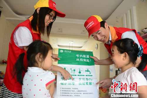 6月12日,国网安徽肥西县供电公司组织志愿者走上街头、走进社区,围绕“携手节能低碳,共建碧水蓝天”的主题,向居民和孩子们宣传节能用电知识,鼓励大家科学、节约使用电能。