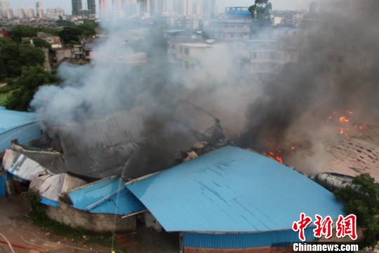 广西钦州家电仓库突发大火 近百消防官兵救援