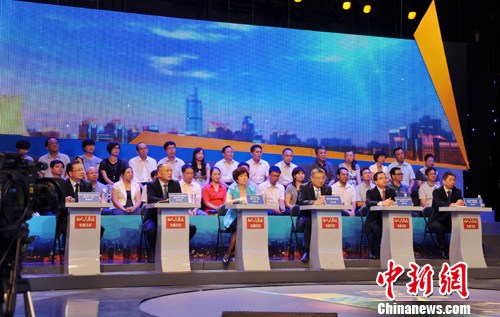 6月22日晚,广西南宁市“向人民承诺——电视问政”直播节目在南宁电视台进行现场直播,本期内容关注教育、医疗、社保、民政等社会保障问题。南宁市政府六个部门负责人就“创业街”、“午托班”、“居家养老”等问题接受民众及作风监督员的提问、质询和评判。