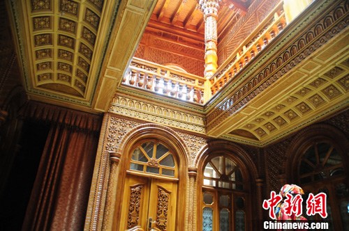 6月底拍摄于新疆喀什市老城区。这里正在进行“喀什市老城区危旧房改造项目”这一民生工程,目前已改造好的房屋或华丽或舒适。图为:改造好的一户人家。中新社发 马新龙 摄