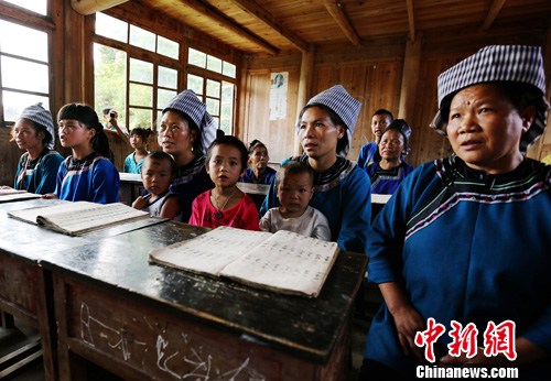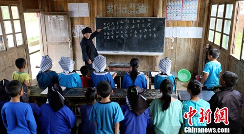 图为水书先生进行课堂式传授水书。中新社发 李长华 摄