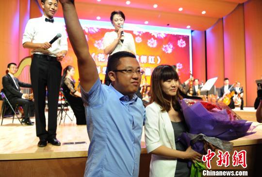 7月9日晚间,在长影音乐厅举行的一场音乐会临近尾声时,出现戏剧性的一幕。一位男青年突然走上舞台,当着全场观众的面,向相爱多年的女友求婚,这突如其来的幸福令女孩喜极而泣。据这位名叫孙鹏的男青年讲,这场求婚仪式是他和亲友共同“密谋”的。最终在亲朋好友及现场观众的祝福声中,热泪盈眶的女孩接受了男友的求婚。(完)