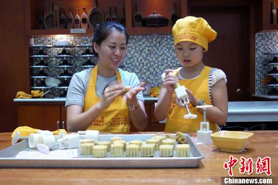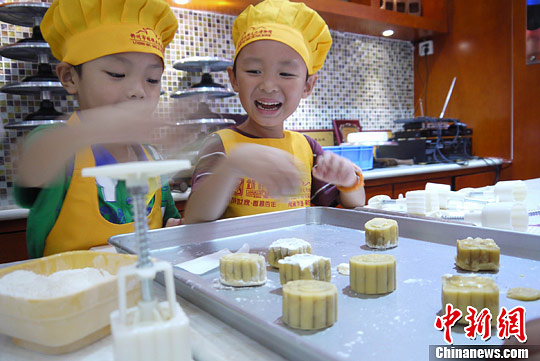 8月20日,离中秋节还有半个多月,几名孩子在广西柳州市桂饼文化博物馆DIY(亲自动手做)月饼,感受中秋佳节亲手打造月饼的传统文化。桂饼文化博物馆是广西首家以糕点文化为主题的民间博物馆,该馆共展出100余种广西各式糕点及3600余件制饼模具,并设置DIY区让市民体验传统制饼文化。